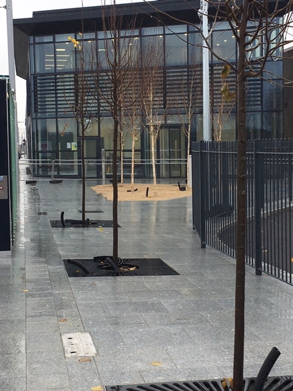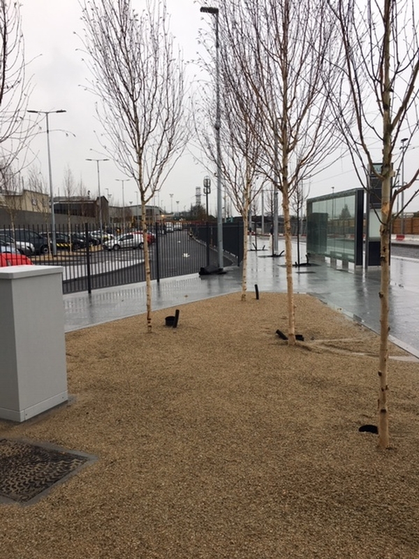 At €368 million this was one of the largest and most complex infrastructure projects undertaken to date in Ireland. The landscaping element of the project was in excess of €300K and comprised extensive tree, shrub and perennial planting. Semi mature Liquidamber styraciflua (Sweetgum) and Quercus ilex (Evergreen Oak) are a wonderful feature of the new Broadstone Plaza with a range of ferns such as Polypodium vulgare, Polystichum setiferum and Dryopteris felix mas adding to the overall planting mix.